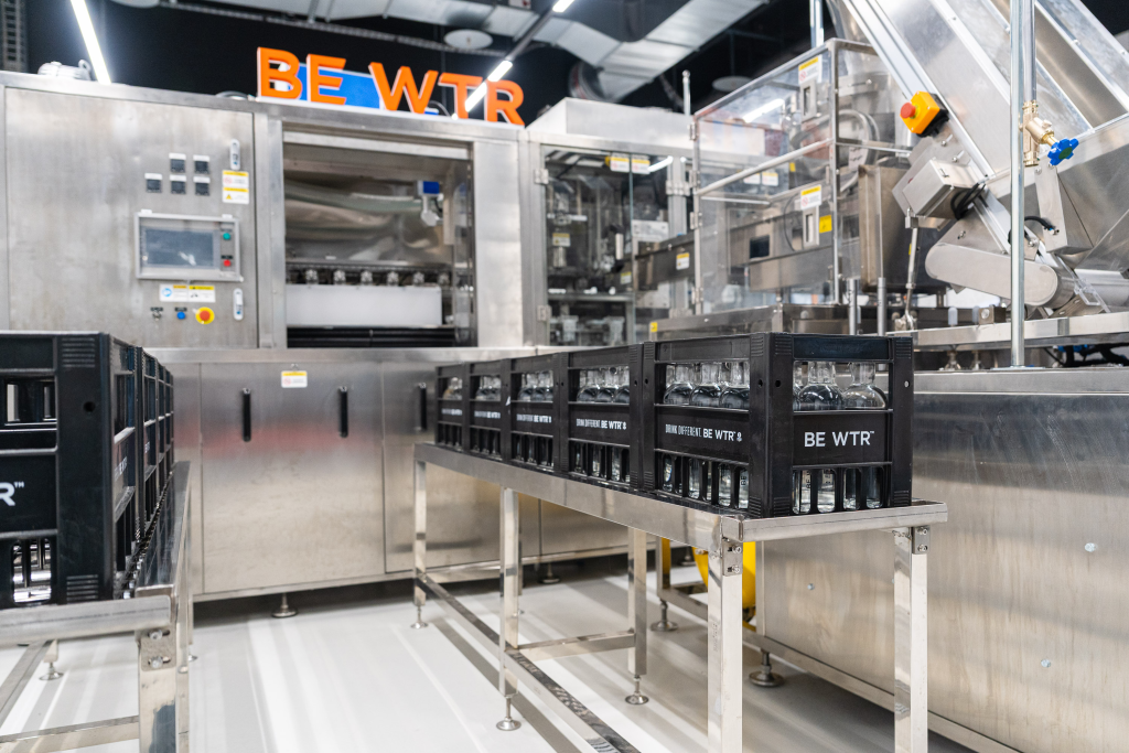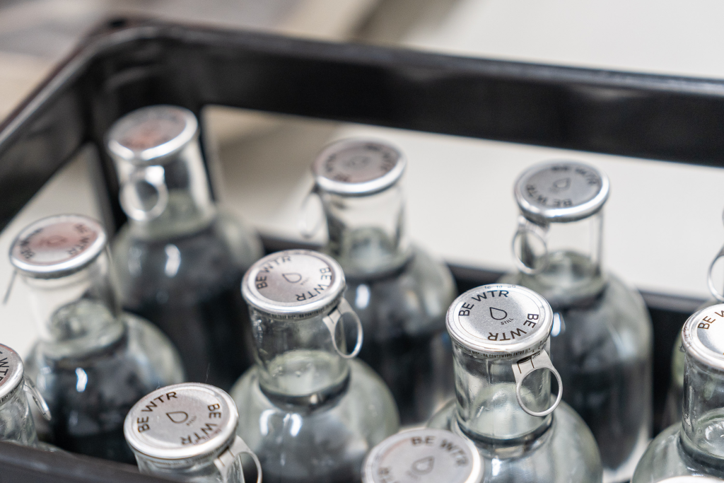 Another innovation is having a water bottling operating in a retail environment and open to the public! Customers could purchase BE WTR still and sparkling bottled on site in returnable glass bottles.