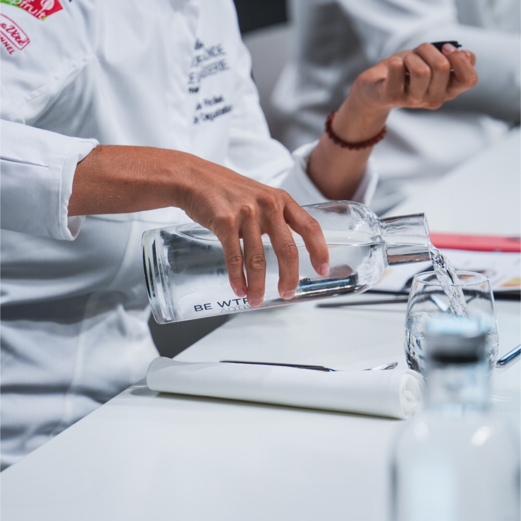 A lab with experts/nerds that can talk for hours about water filtration methods or differences in the local water between different Swiss regions. These are the masterminds that have come up with AQTiV+, a true water innovation for high gastronomy. Thanks to our activated water, a carafe handblown in mythical La Rochère, combined with a high-tech, Swiss resonator, you get water where the water molecules dance. Resulting in a velvety and silky texture that opens up your taste buds and enhances the flavours of the food on your plate and the wine in your glass. In short: the activated water kicks your gastronomic pleasure up to the next level. AQTiV+ was also used as a palate cleanser by all juries between the courses at Bocuse d’Or in Trondheim.